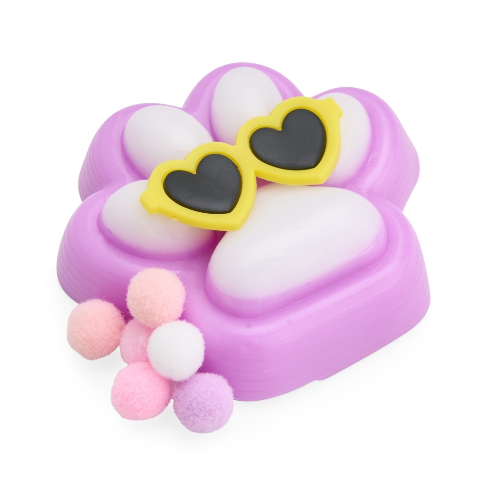 Descrição: Brinquedo apertável antiestresse em formato de pata estilizada. Produzido em borracha termoplástica de textura lisa e macia, que adere facilmente a superfícies planas. Acompanha um pequeno óculos em plástico e bolinhas de pelúcia para decoração.