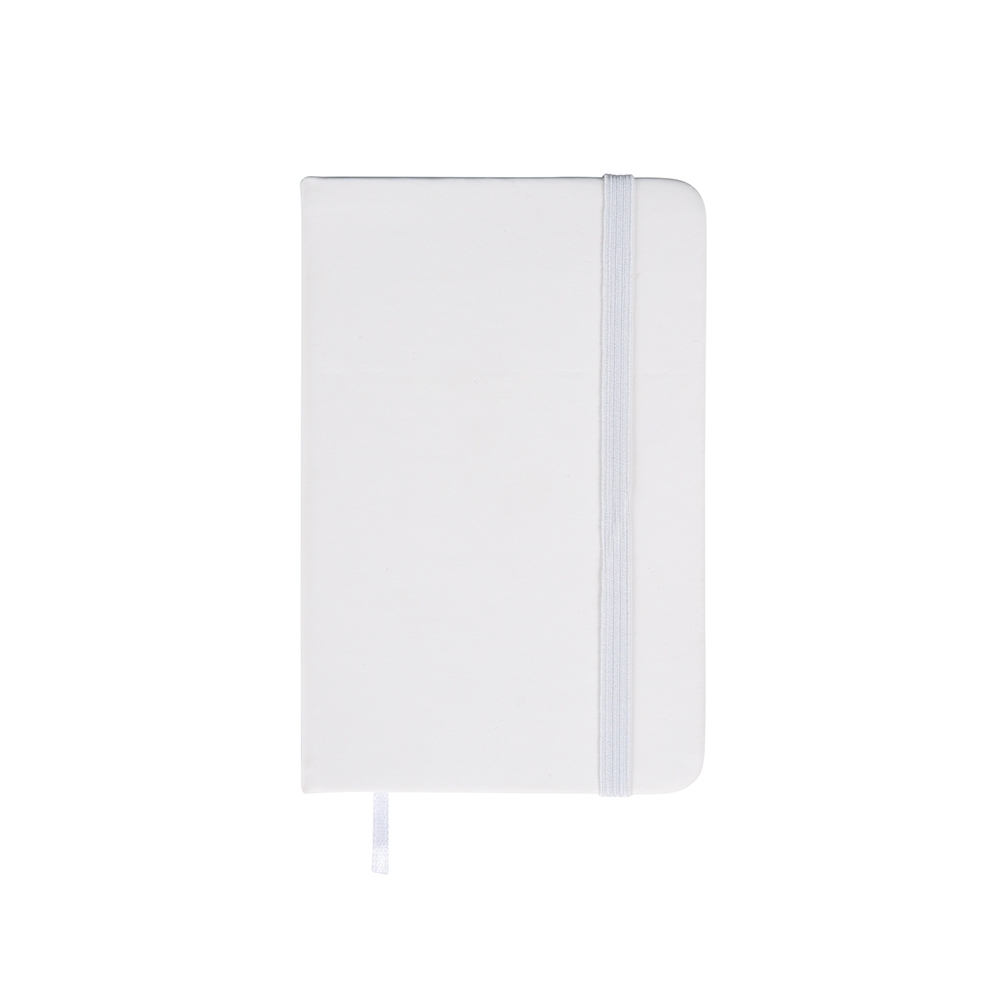 Descrição: Caderneta com capa emborrachada, marca-páginas em fita de cetim e fechamento em elástico. Possui aproximadamente 80 folhas pardas não pautadas.Largura : 9 cmComprimento : 14 cmEspessura : 1,4 cmMedidas aproximadas para gravação (CxL): 7 cm x 12 cmPeso aproximado (g): 108