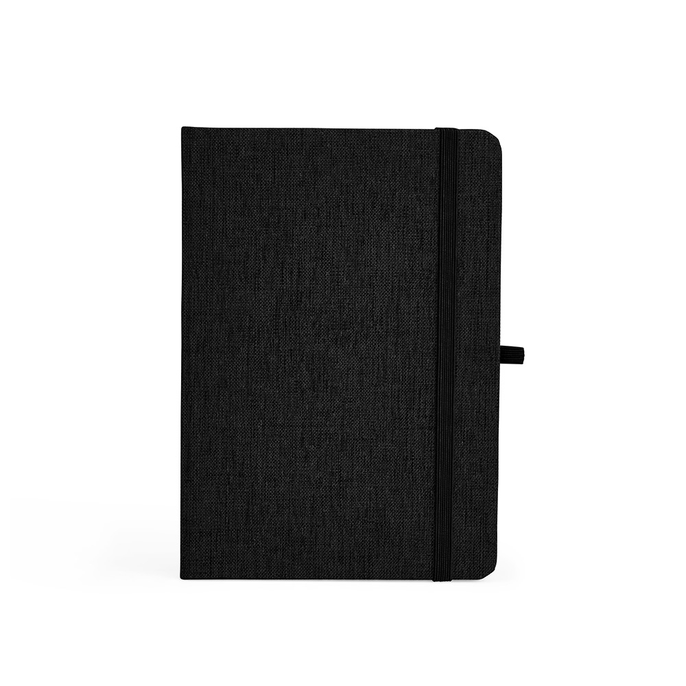 Descrição: Caderneta feita de linho com porta caneta elástico, marcador de página em cetim e fita elástica para fechar. Contém aproximadamente 80 folhas brancas pautadas.Altura : 17,5 cmLargura : 12,4 cmEspessura : 1,3 cmMedidas aproximadas para gravação (CxL): 13 cm x 8 cmPeso aproximado (g): 174