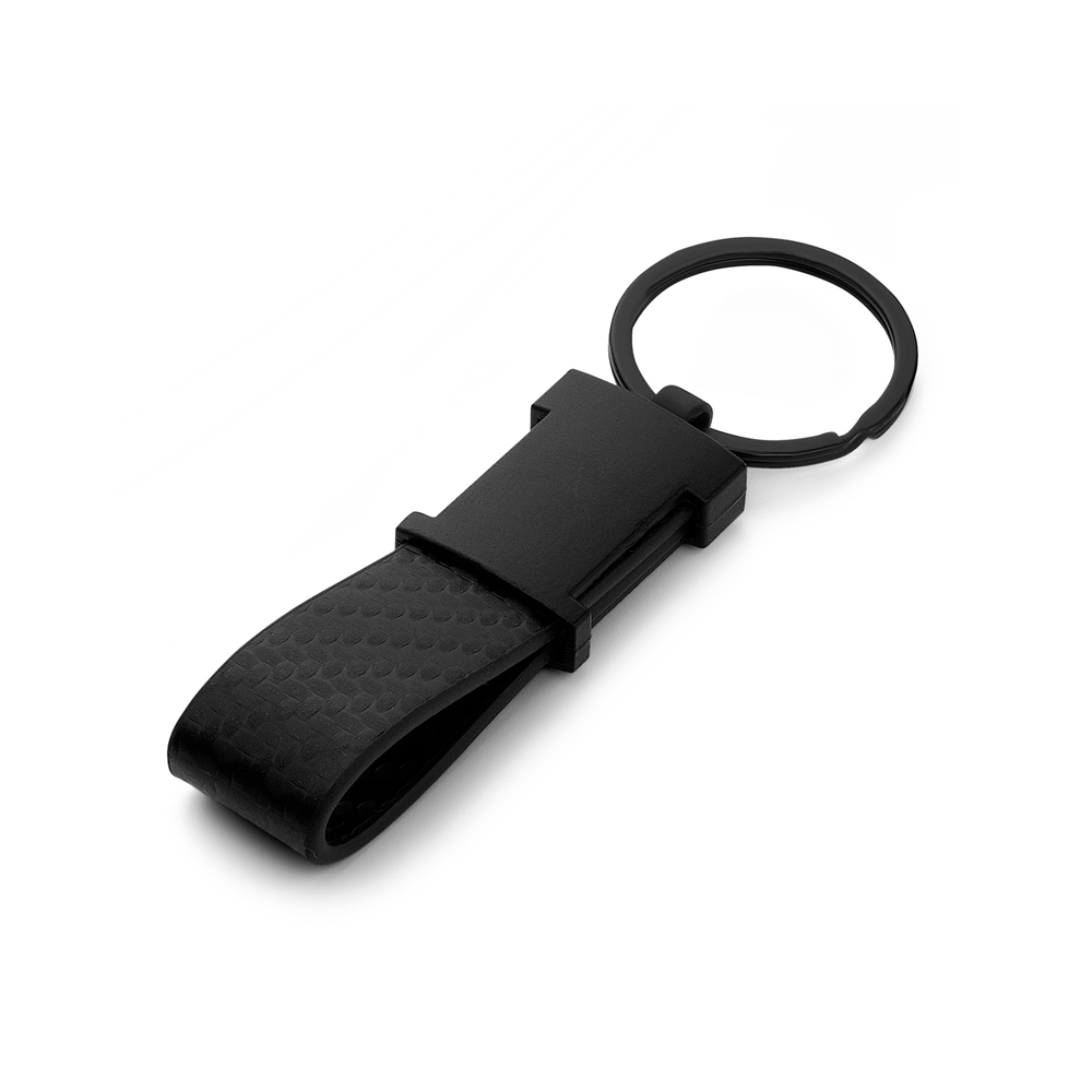 Descrição: Chaveiro de metal em níquel brilhante com alça em PU, frente lisa e verso com dois parafusos.