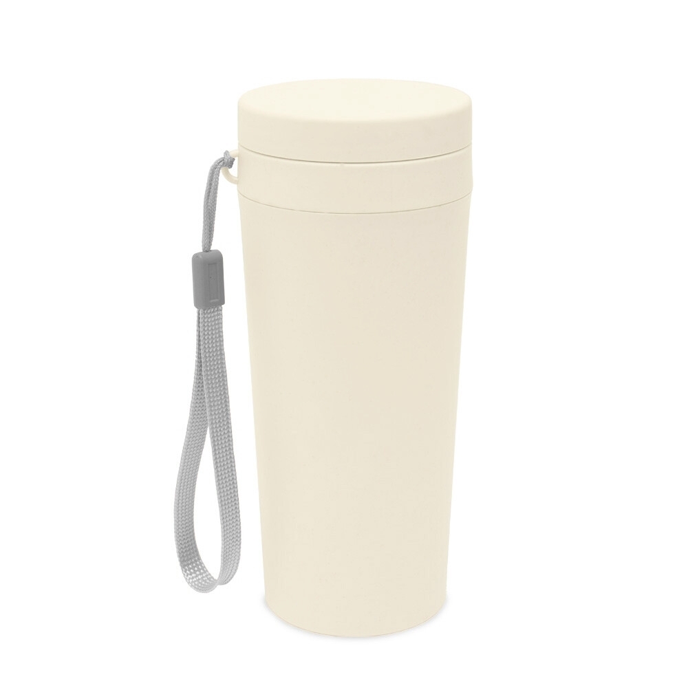 Descrição: Copo isotérmico fibra de bambu 350ml com parede dupla e alça. Copo produzido em Polipropileno livre de BPA, possui uma tampa de vedação rosqueável e alça de nylon (removível) para transporte. Conserva a temperatura interna durante um período de 1 à 2 horas, mas não dispõe de isolamento térmico. O copo pode ser levado a lava-louças, geladeira e micro-ondas.