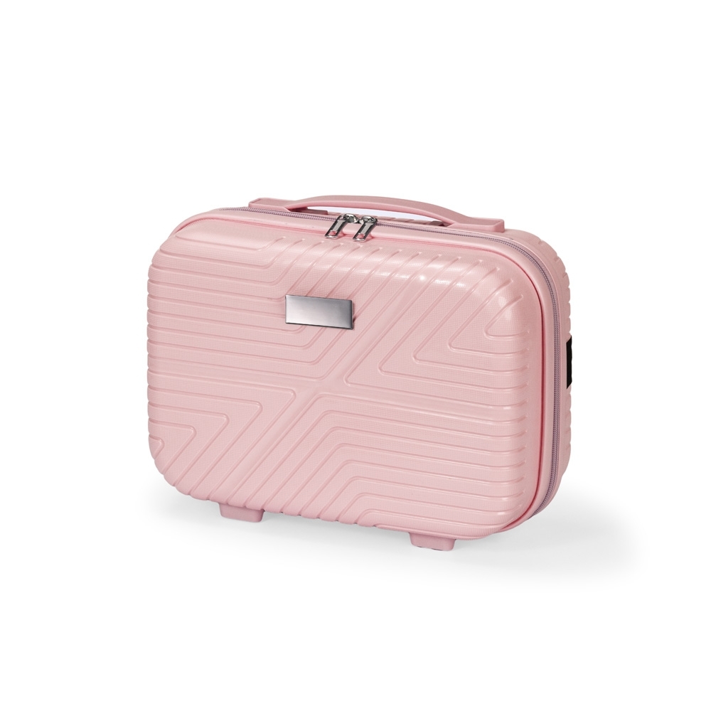 Descrição: Frasqueira de viagem em plástico rígido com capacidade para até 10 litros. Apresenta compartimento em uma das laterais internas com fechamento em zíper e bolso superior em tela de malha. Possui quatro apoios reforçados na parte inferior, alça de mão e elástico na parte posterior para encaixe em malas maiores. Acompanha placa em metal para personalização.