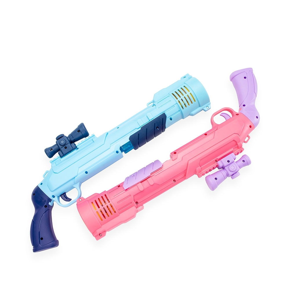 Descrição: Brinquedo lançador de bolhas de sabão com estrutura feita em plástico. Com o frasco de líquido acoplado, dispara múltiplas bolhas ao acionar o gatilho, que ativa o mecanismo de lançamento alimentado por quatro pilhas AA (não inclusas). Acompanha dois frascos líquido para formar bolhas e uma alça removível em nylon com mosquetões plásticos.