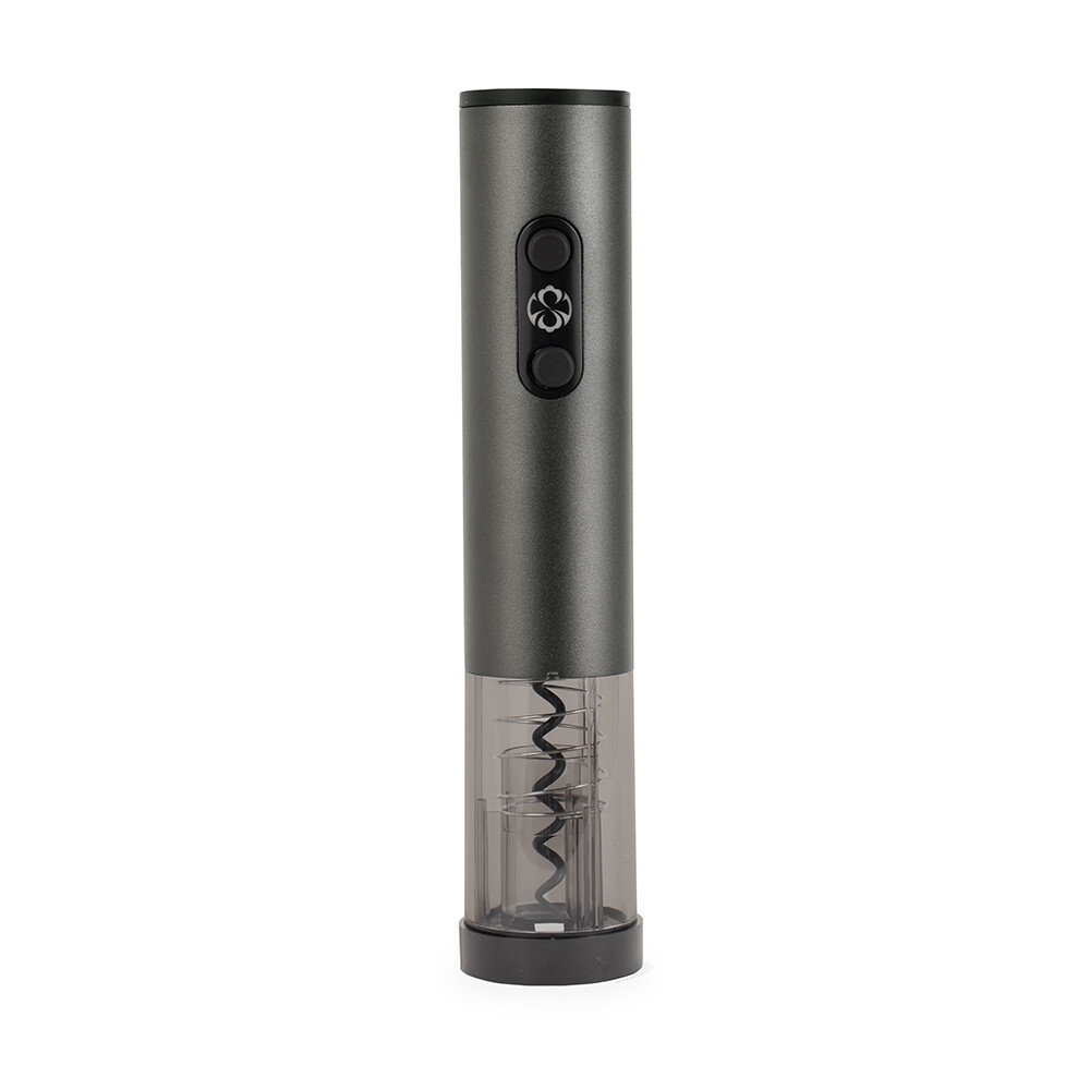 Descrição: Saca-rolhas elétrico com estrutura em ABS, policarbonato, alumínio e inox, além de painel com iluminação em LED e botões emborrachados. Funciona com quatro pilhas AA (não inclusas) e acompanha cortador de lacre.